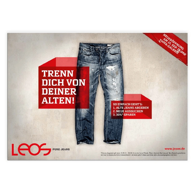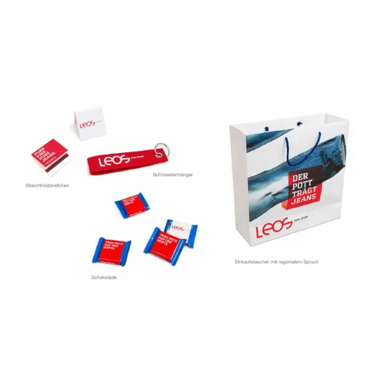 Wir entwickelten ein umfassendes Redesign und positionierten LEOS als „Casual Experts for Jeans & More“. Vom Logo über Geschäftsausstattung, Werbemittel und Merchandise bis hin zur Website entstand ein durchgängiger Markenauftritt, der Persönlichkeit sichtbar macht und das Einkaufserlebnis in den Mittelpunkt stellt.